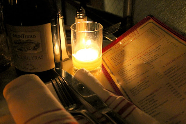 Gaslight Bistro--French charm with excellent food (I had the mussels) and their charcuterie plate is to die for.